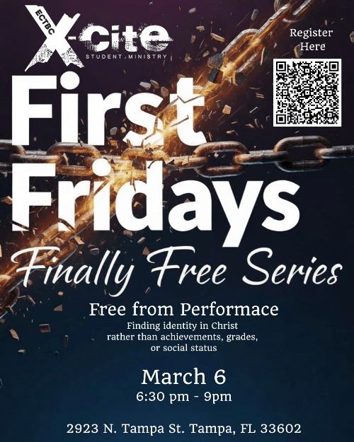 Calling all students in grades 7 - 12! You’re invited to First Fridays, a monthly gathering hosted by X-Cite Student Ministry in the Fellowship Hall. Bring a friend, enjoy some food, and be a part of the conversation. RSVP by March 5 to let us know you'll be there.
